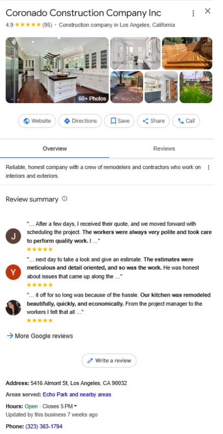 The construction company is now easily discoverable on Google Search and Maps, turning online visibility into real business opportunities.